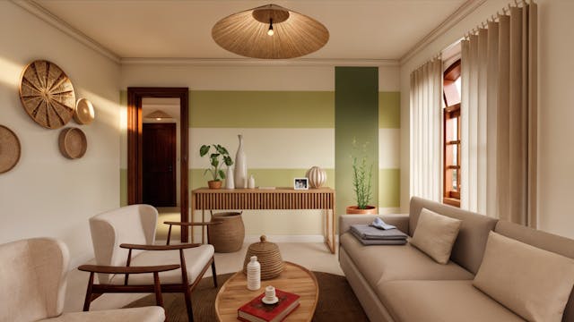 A escolha do estilo boho é adaptada para incluir tons mais vivos, ao contrário da paleta neutra normalmente associada a esse estilo, trazendo mais energia e frescor ao ambiente. A proposta também valoriza o uso de jardineiras, cachepôs e um jardim vertical no hall de entrada, aproveitando o espaço de maneira inteligente e sem áreas permeáveis. Essa integração com a natureza não só embeleza o ambiente, mas também contribui para a qualidade do ar e o bem-estar dos moradores.