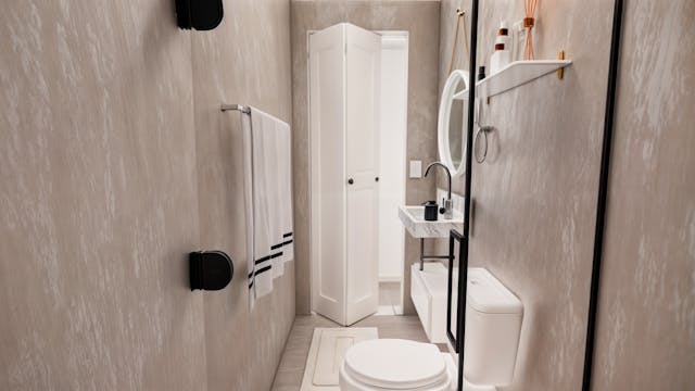 Além disso, o projeto incluiu a transformação do quarto principal em uma suíte, oferecendo mais praticidade e privacidade para a cliente. O quarto do filho também foi reformado, garantindo que todos os espaços atendam às necessidades específicas da família, com soluções funcionais e estéticas.