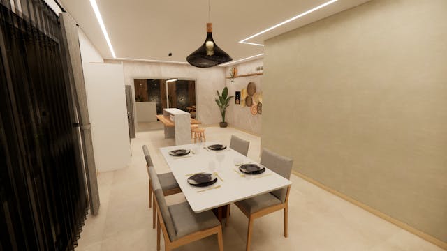 Este projeto residencial combina elementos do estilo minimalista moderno e neoclássico, criando uma casa funcional, arejada e esteticamente equilibrada. A distribuição dos espaços foi cuidadosamente planejada para promover uma integração fluida entre os ambientes, garantindo conforto, ventilação cruzada e uma atmosfera acolhedora para os moradores e visitantes.